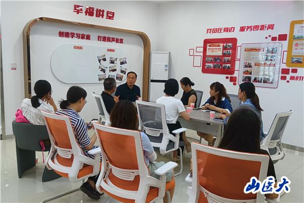 為充分發(fā)揮校地雙方的資源優(yōu)勢,探索校地雙方建立常態(tài)化合作新機制,6月27日,人文社會科學學院院長王志中、黨總支書記李薇帶領(lǐng)學院教師一行8人,赴太原市杏花嶺區(qū)澗河街道辦事處黨群服務(wù)中心、耐火西巷社區(qū)和同熙苑社區(qū)參觀訪問,與杏花嶺區(qū)澗河街道黨工委書記郭峰、耐火西巷社區(qū)黨委書記王婧、同熙苑社區(qū)黨委書記王彩萍圍繞基層治理、聯(lián)合開展主題黨日活動、學生實習就業(yè)、科學研究等領(lǐng)域開展合作進行了深入的交流。