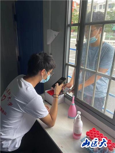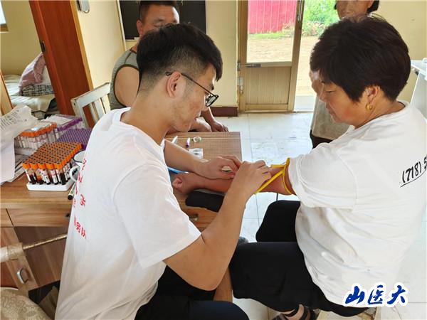 下午,隊員們進入了社區(qū)街道辦公室內(nèi)對返并的省內(nèi)省外人員進行登記,認(rèn)真摸排其行程軌跡,嚴(yán)格落實疫情防控政策,共同守護來之不易的防疫成果。隨后,隊員們對社區(qū)的老人進行了免費抽血檢查,不僅學(xué)會了如何使用儀器進行采血,也通過實踐活動真切的深入到基層組織和群眾中,了解到了如今人們的生活在中國共產(chǎn)黨的領(lǐng)導(dǎo)下變得越來越好,明白了身為青年學(xué)生、山醫(yī)學(xué)生肩負(fù)的重任。