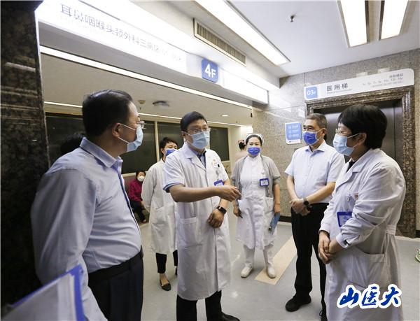 在1號住院樓入口處,張瑞平要求工作人員充分認識目前疫情防控的嚴峻形勢,始終保持高度警惕,落實落細疫情防控各項措施,做好住院部管理。同時要求強化各住院樓出入口管控,嚴禁門診患者進入住院部就診和處置,防止交叉感染。