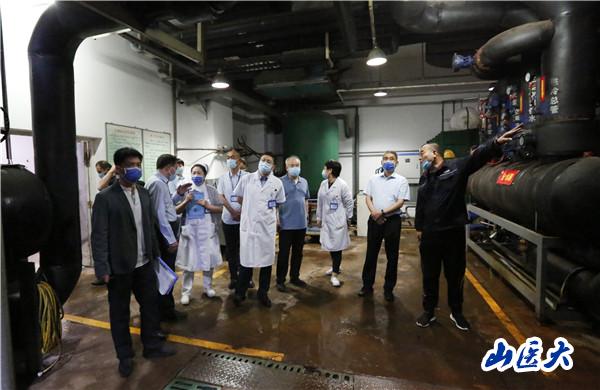 為全面貫徹落實省委省政府關于安全生產(chǎn)工作的決策部署,8月30日,第一醫(yī)院院長張瑞平、副院長范雙民帶領各職能科室負責人對醫(yī)院氧氣站、配電室、鍋爐房、1號住院樓出入口、消防站、水泵房、設備層、5號住院樓出入口、實驗室、靜配中心、營養(yǎng)食堂以及核醫(yī)學科、病理科、院內(nèi)施工現(xiàn)場等21處安全生產(chǎn)重點部位和疫情防控重點部位共56項工作內(nèi)容開展現(xiàn)場檢查,全面排查安全生產(chǎn)和疫情防控隱患漏洞,強化工作人員安全責任意識。