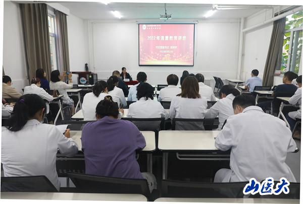 為堅持不懈把全面從嚴治黨向縱深推進,扎實推進“清廉山醫”和“清廉口院”建設,9月22日下午,口腔醫(學)院邀請校紀委副書記郝曉娟以“廉潔自律守初心 忠誠干凈勇擔當”為題作專題講座。校紀委綜合室副主任丁朝霞,院黨委書記任秀云、副院長葛學軍以及全體中層干部參加講座。院紀委書記秦海云主持講座。