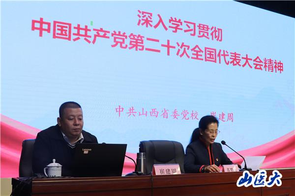 11月5日,學校黨校第一期“三支隊伍”黨的二十大精神專題研修班邀請山西省委黨校黨的建設(shè)教研部主任崔建周教授作“深入學習貫徹中國共產(chǎn)黨第二十次全國代表大會精神”的專題教學,研修班全體學員參加,馬克思主義學院院長蘇果云主持。