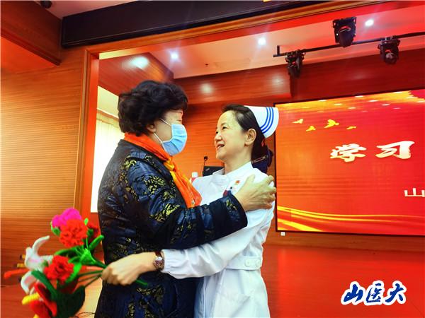 活動(dòng)現(xiàn)場(chǎng)氣氛熱烈,在聽完張穎惠的宣講后,大家紛紛舉手發(fā)言交流學(xué)習(xí)心得,醫(yī)院老領(lǐng)導(dǎo)何亞田書記表示:“黨的二十大精神激勵(lì)我們老黨員要進(jìn)一步增強(qiáng)黨性,永遠(yuǎn)跟黨走!”老領(lǐng)導(dǎo)齊文中副書記講到:“張穎惠主任對(duì)報(bào)告的解讀提綱挈領(lǐng),令人印象深刻,回去以后我們還要繼續(xù)深入學(xué)習(xí)。”運(yùn)營(yíng)部黨支部書記李霞分享了湖北武漢疫情暴發(fā)后,她與在援鄂前線抗疫的張穎惠交流時(shí)的感人場(chǎng)景。宣傳部黨支部書記王紅表示,要用實(shí)際行動(dòng)為推進(jìn)醫(yī)院高質(zhì)量發(fā)展而不懈奮斗,為推進(jìn)健康中國(guó)建設(shè)不懈奮斗!老黨員劉俊芳豎起大拇指說(shuō):“張穎惠主任的講述全面深刻,為有這樣的黨代表而驕傲!”老黨員吳振蘭代表全院三百余名離退休黨員為張穎惠送上了老干科編織志愿小組親手編織的一束美麗的絨線花。