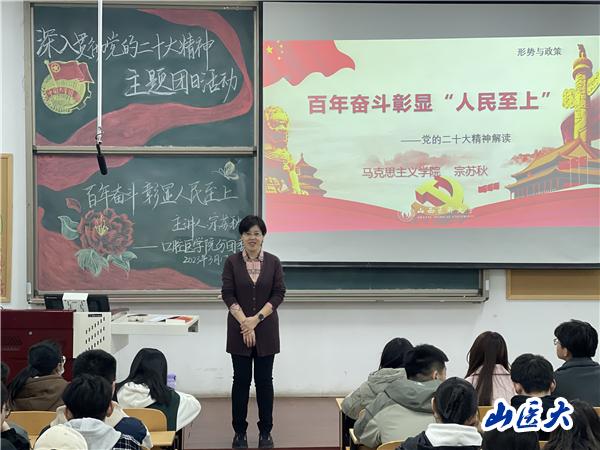 為扎實推動黨的二十大精神進校園,引導青年學生自覺把思想和行動統(tǒng)一到黨的二十大精神上來,3月17日,口腔醫(yī)學院在中都校區(qū)至善C座104教室組織開展學習貫徹黨的二十大精神主題團日活動。活動特邀校級思政課骨干教師宣講團成員、馬克思主義學院宗蘇秋老師,以“百年奮斗彰顯人民至上”為題進行宣講。口腔醫(yī)學院100余名本科生參加活動。