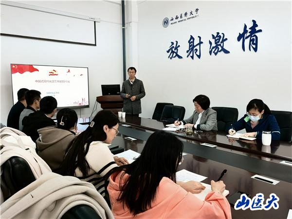 為深入學(xué)習(xí)貫徹習(xí)近平新時(shí)代中國(guó)特色社會(huì)主義思想和黨的二十大精神,把教工黨員的思想統(tǒng)一到黨的二十大精神上來(lái),理論聯(lián)系實(shí)際,凝心聚力于學(xué):脫г旱母饗鈧氐愎ぷ。醫(yī)學(xué)影像學(xué)院教工黨支部于3月14日在中都校區(qū)至善B一層108會(huì)議室開(kāi)展了學(xué)習(xí)貫徹黨的二十大精神主題黨日活動(dòng)。此次活動(dòng)由學(xué)院黨總支書記孫天青主持,思政課骨干教師宣講團(tuán)成員、馬克思主義學(xué)院薛冬受邀主講,教工支部全體13名黨員參加了學(xué)習(xí)。