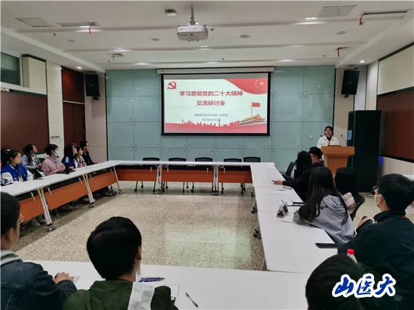 為深入學習貫徹黨的二十大精神,堅持不懈用習近平新時代中國特色社會主義思想凝心鑄魂,加強學生黨員的黨性修養,不斷提高學生黨員的素質,4月12日下午,基礎醫學院本科生第二黨支部在圖書館C102黨史學習教育空間舉行學習貫徹黨的二十大精神主題研討交流會?;顒佑芍Р拷M織委員薛星莉主持,馬克思主義學院宋祿華老師受邀主講。