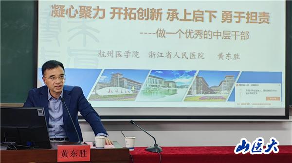 4月12日下午,杭州醫(yī)學(xué)院原院長黃東勝教授受邀在我校黨的二十大精神研討班第2期暨處級干部能力提升培訓(xùn)班上以“凝心聚力,開拓創(chuàng)新,承上啟下,勇于擔(dān)當(dāng)——做一名優(yōu)秀中層干部”為題作專題教學(xué)。