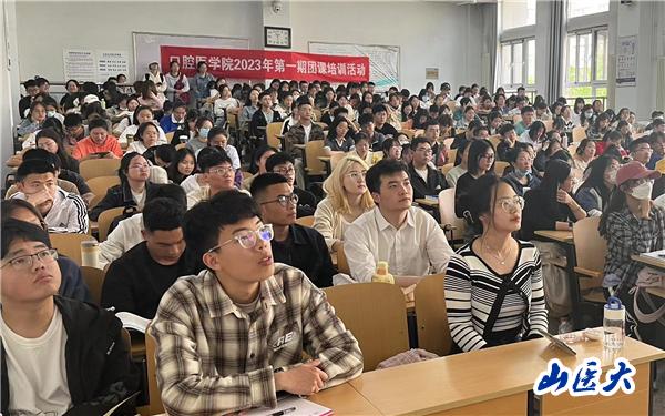 為深入貫徹黨的二十大精神,積極響應學:耪,4月18日上午,口腔醫學院分團委在中都校區慎思樓b201教室舉辦了2023年第一期團課培訓。培訓由學院分團委書記張楠主講,入黨積極分子、推優同學及學生干部共100余名團員青年參加學習。