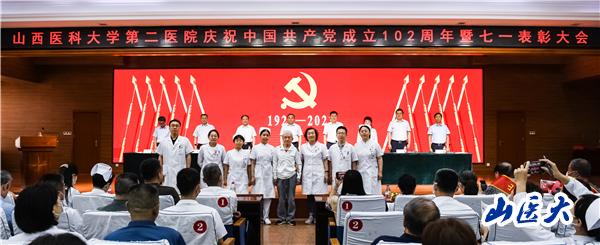 6月29日下午,我校第二醫院召開慶祝中國共產黨成立102周年暨七一表彰大會。院黨委書記李保,院黨委副書記、院長趙斌,院黨委副書記魏永紅,院紀委書記王瑛,院黨委委員、副院長董紅霖、原大江、牛金亮、李少剛,“光榮在黨50年”老黨員代表等出席了會議,醫院各黨支部書記、黨務部門負責人、受表彰的先進集體和個人代表及新黨員同志參加了大會。李保在會上講話。趙斌主持會議。