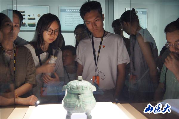 在講解員的引導(dǎo)下,全體師生參觀了“文明搖籃”“夏商蹤跡”“晉國霸業(yè)”和“民族熔爐”這四個展廳,按時間順序了解了舊石器時期的人類如何在山西這片土地上生存,又經(jīng)過怎樣的發(fā)展孕育出了棗園文化、陶寺文化。山西走過夏商時期的觥籌交錯,到周朝擁有了自己流傳至今的名字“晉”,在諸侯紛爭中大放異彩。鎮(zhèn)院之寶鳥尊默默訴說著過往的輝煌和榮耀。而在魏晉南北朝發(fā)生的這一次重大的民族融合,讓山西成為了一座開放包容的城市。