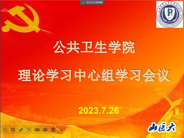 7月26日上午,公共衛(wèi)生學(xué)院黨委理論學(xué)習(xí)中心組以線上會(huì)議形式召開集中學(xué)習(xí)會(huì)議,學(xué)習(xí)習(xí)近平總書記在文化傳承發(fā)展座談會(huì)上的重要講話精神、習(xí)近平總書記在內(nèi)蒙古考察時(shí)的重要講話精神,《習(xí)近平新時(shí)代中國(guó)特色社會(huì)主義思想專題摘編》中“積極參與全球治理體系改革和建設(shè)”專題等,院領(lǐng)導(dǎo)、黨委委員、分團(tuán)委書記、組織員、教工黨支部書記代表、研究生黨支部書記代表參加了會(huì)議。學(xué)院黨委書記張志紅主持會(huì)議。