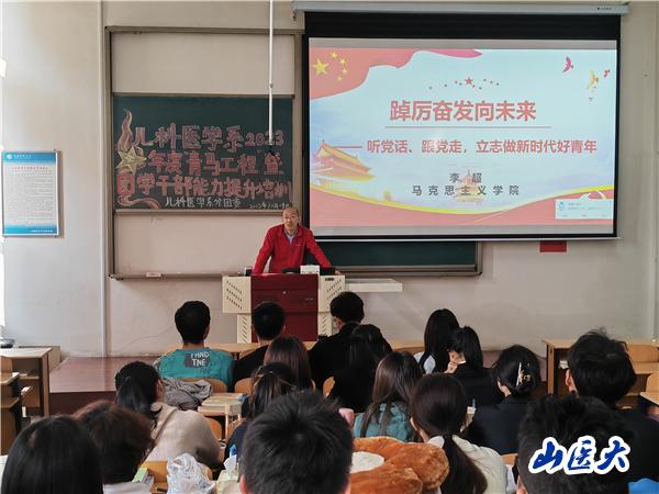 培訓中,馬克思主義學院思政課教師李超以“聽黨話、跟黨走、立志做新時代好青年”為題,從黨的二十大報告內容概述、立志做新時代好青年等方面展開解讀,增強了學員們“中國方案為人類謀福利,增強了為世界謀大同”的文化自信感 ,牢固樹立了“青年強則國家強” 的責任擔當意識。