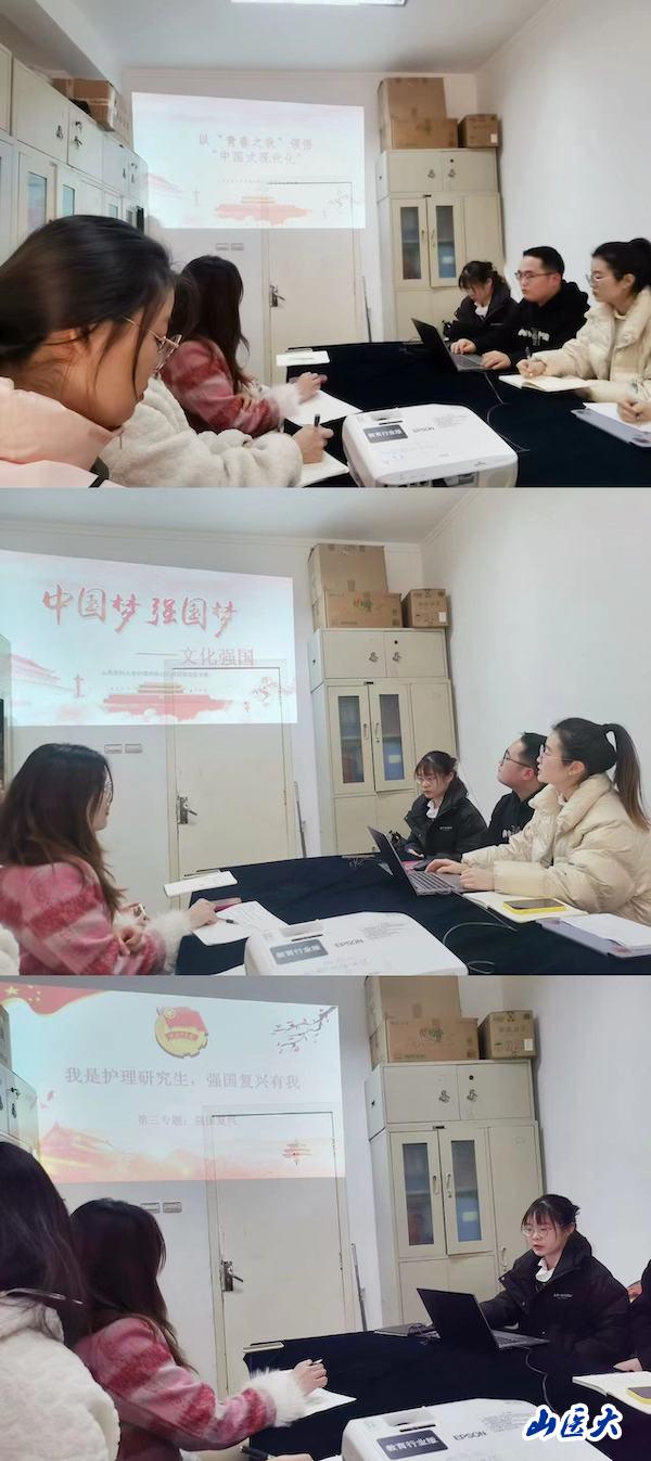 交流會上,研究生團總支王鴻偉、都旖菲、連笑寒結合“強國復興”和“挺膺擔當”的要求,分別從中國式現代化特征和內涵的理論學習、文化強國和護理研究生創新實踐三個角度進行分享,同時設計了辯論賽、主題繪畫、問卷答題等多種活動形式,輔以學習結果評價反饋方式,不斷深化馬克思主義理論學習,充分發揮專業優勢。