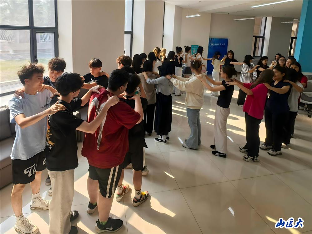 本次活動巧妙把“身體放松、社交互動與藝術表達”融為一體。主持人以“接力按摩”開啟破冰環節,引導同學們圍成圓圈為同伴捏肩捶背,一句“是閨蜜不是敵蜜”的幽默提示,讓笑聲驅散緊張,轉身回饋的互動設計,更讓互助的溫暖在肢體接觸中自然流動,為后續環節奠定輕松信任的基調。“名字接龍”階段,各組的復述與提示聲此起彼伏,洋溢著青春的活力與協作的熱情;進入肌理畫創作后,現場漸趨安靜,唯有工具與畫布接觸的沙沙聲,同學們時而皺眉調配色彩,時而舒展眉頭堆疊紋理,專注的神情與手下漸次成型的肌理相映,構成一幅“壓力在筆觸中消融,情緒在創作中沉淀”的生動畫面。混合著沙粒的顏料在畫布上堆疊出各異肌理,宛如年輕心靈的生命軌跡在此凝固。