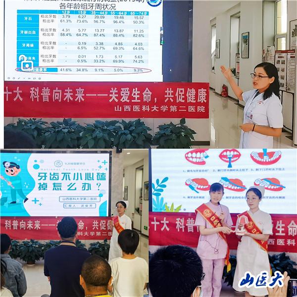 9月16日上午,在第34個“全國愛牙日”來臨之際,第二醫(yī)院口腔科赴杏花嶺區(qū)鼓樓街道西羊市社區(qū)進行了以“口腔健康,全身健康——護牙健齒少年強,健康中國民族興”為主題的科普義診活動,11名醫(yī)護人員參加了科普義診。