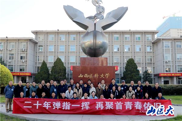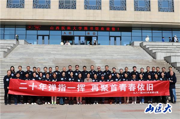 10月14日,我校第一臨床醫學院臨床醫學專業2003屆50余名校友從祖國各地返回母校,共同紀念畢業二十年。校友們一早就來到迎澤校區,走過曾經走過的路,呼吸曾經呼吸過的空氣,回想起大學五年的點點滴滴,校友們不禁感慨萬千、熱淚盈眶,并一起合影留念。思想政治輔導員王素萍老師代表學校對校友們歡聚母校表示熱烈歡迎。隨后,校友們來到中都校區,參觀了校史館,了解了母校百年厚重的歷史。中都校區寬闊平坦的校園廣場、恢弘大氣的圖書館、秋意盎然的美麗風景,驚艷了所有的校友。本次聚會采取了線上直播的方式,讓所有未能到場的校友充分感受到師生情、校友情、母校情,分享了參與活動的喜悅和感動。
