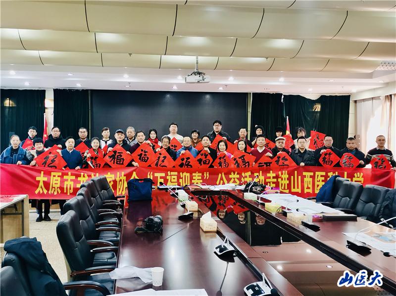 在中華民族傳統(tǒng)節(jié)日春節(jié)即將到來之際,1月25日上午,中國毛體書法家協(xié)會副主席、我校原黨委副書記、省工商局原局長劉增民,太原市書法協(xié)會主席袁筠等20余名書法家冒著嚴寒,帶著暖暖的愛心走進我校迎澤校區(qū),舉辦了一場“萬福迎春”書寫對聯(lián)公益活動。