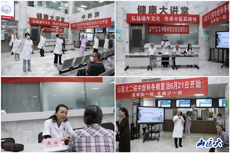 周冰主任、燕浩杰主治醫(yī)師、王麗華主治醫(yī)師為前來(lái)咨詢的群眾把脈開方。專家們還結(jié)合夏季氣候特點(diǎn),為群眾提供個(gè)性化的夏日中醫(yī)養(yǎng)生調(diào)理方案和健康指導(dǎo),針對(duì)大家提出的問題進(jìn)行詳細(xì)解答,讓群眾對(duì)中醫(yī)養(yǎng)生有了更深入的了解和認(rèn)識(shí)。恰逢端午,又即將進(jìn)入夏至節(jié)氣,從祖國(guó)傳統(tǒng)醫(yī)學(xué)講,也正是夏季養(yǎng)生保健及“冬病夏治”的最佳時(shí)節(jié)。周乃忠主任醫(yī)師以“端午時(shí)節(jié)話養(yǎng)生”,史曉娜主治醫(yī)師和艾永寧護(hù)士長(zhǎng)以“冬病夏治‘三伏貼’”,田樹杰主治醫(yī)師以“經(jīng)絡(luò)暢通,一身輕松之‘宮廷理筋術(shù)’”為題為廣大群眾普及傳播中醫(yī)節(jié)氣養(yǎng)生知識(shí),傳授防病養(yǎng)生的小妙招,受到了現(xiàn)場(chǎng)群眾的熱烈歡迎。活動(dòng)現(xiàn)。交と嗽被垢殖〔斡胝咴土擻芍幸嬌埔交ぶ骯ぞ難×現(xiàn)譜韉畝宋緗凇跋隳搖。