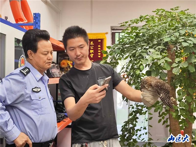 王佳城同學發(fā)現(xiàn)受傷鳥只后,迅速采取行動,用自己所學醫(yī)學知識和滿腔熱情,對這只鳥進行了初步救助。并第一時間聯(lián)系駐校民警,希望通過多方力量使得鳥只得到專業(yè)的救治。經(jīng)晉中市野生動物保護站工作人員現(xiàn)場確認,這只鳥為大鷹鵑鳥屬國家保護野生動物,隨后將這只大鷹鵑鳥帶回保護站進行進一步救治。