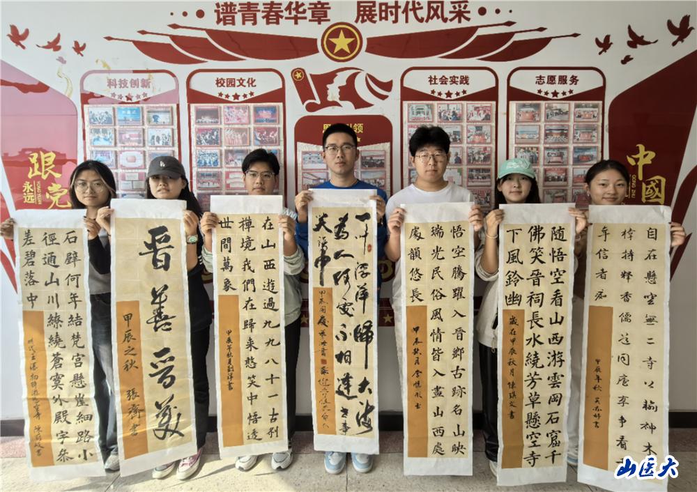 活動啟動以來,吸引了全校眾多學子關注,來自管理學院、公共衛生學院、生物醫學工程系各年級共計700余名學生積極參與。同學們圍繞《黑神話:悟空》在山西的取景地,如大同云岡石窟、朔州崇福寺、忻州佛光寺、晉中平遙鎮國寺、雙林寺等地,精心創作并提交書畫作品百余幅。繪畫作品筆觸細膩,構圖巧妙,將山西的古建筑、自然風光和人文景觀展現得淋漓盡致,同時融入《黑神話:悟空》中的游戲元素,兼具時代感和趣味性;書法作品主題鮮明,創意獨特,展示了學子們對家鄉傳統文化的自豪之情與獨到見解。經過專業評審團的嚴格評。鈧掌姥〕鎏氐冉奔耙、二、三等獎。