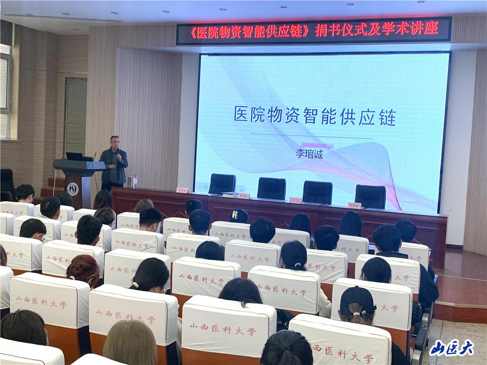 10月16日下午,管理學院在中都校區博學A一層報告廳舉行了李琯誠校友《醫院物資智能供應鏈》一書捐贈儀式及學術講座。學校檔案館館長牛樂,管理學院黨委副書記喬曉梅、副院長李建濤,以及部分教師代表和2023 級、2024 級智能醫學工程的全體學生參加了活動。