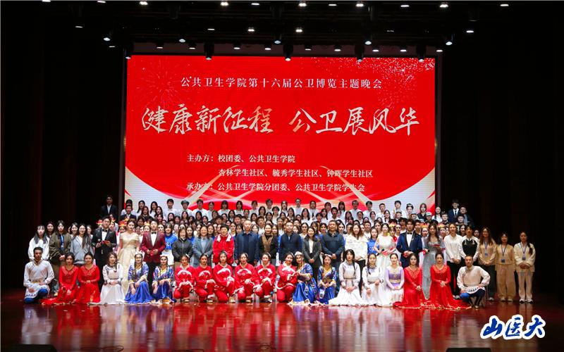 歌舞為載,共譜華章。11月17日晚,由校團委、公共衛生學院、杏林學生社區、毓秀學生社區、鐘暉學生社區主辦,公共衛生學院分團委、公共衛生學院學生會承辦的第十六屆公衛博覽“健康新征程,公衛展風華”主題晚會在中都校區大學生劇場圓滿落幕。學校組織部、宣傳部、學生工作部、校團委等部門、院系基層黨組織書記、副書記及師生代表600余人觀看了晚會。