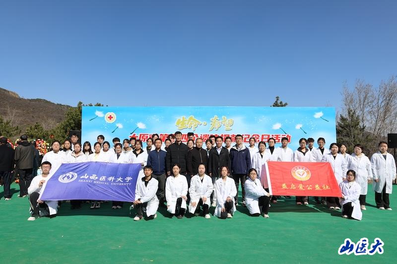 為緬懷無私奉獻的捐獻者,弘揚人道主義精神,4月1日上午,由太原市紅十字會、太原市民政局、山西晚報社共同主辦,c7c7.app承辦的太原市第十四個遺體捐獻紀念日活動在天龍山仙居園舉行。我?;A醫學院黨委書記王卓,校團委副書記常彥民及50余名師生代表參加了活動。