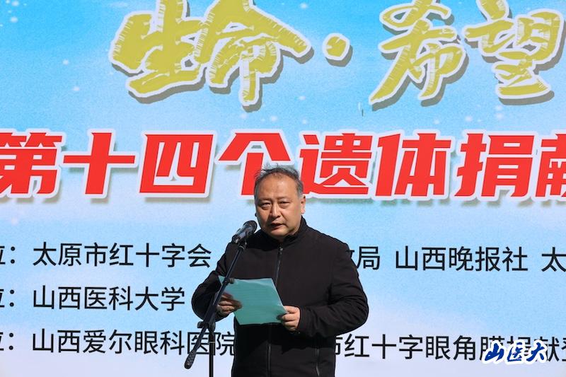 活動伊始,全體人員面向“太原市遺體捐獻紀念碑”默哀一分鐘,表達對遺體捐獻者的深切追思?;A醫學院黨委書記王卓講話中指出我們將以捐獻者的無私精神為指引,繼續致力于醫學教育和研究,培養更多優秀的醫學人才,推動醫學科技的進步,為三晉百姓乃至全國人民的健康事業做出更大的貢獻。