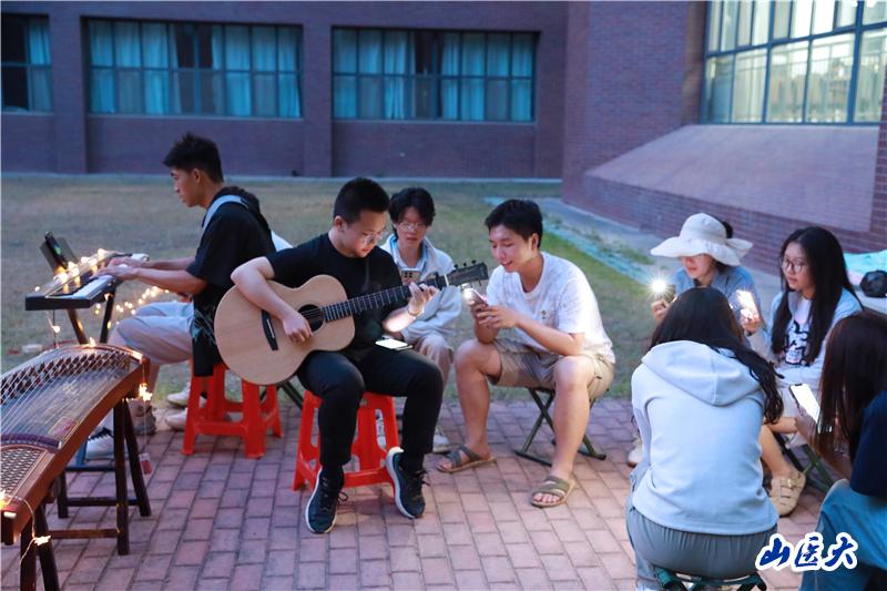 活動以“音為有你,心向陽光”為主題,通過音樂與互動游戲相結合的形式,為師生帶來了一場治愈心靈的夏日盛宴。自由表演環節迅速點燃氣氛。參與者即興演奏吉他、電子琴、古箏等樂器,在草坪上留下創意打卡瞬間,歌手們不拘泥于獨唱,借助音響與燈光,與同學們圍坐在一起,共同唱響喜愛的音樂,溫馨的氛圍治愈著每一位同學。隨后,全場觀眾在吉他伴奏下合唱經典童謠《童年》,悠揚的歌聲與晚風交織,傳遞出純真與溫情。光與音樂交織中,有人隨節奏搖擺,有人用手機記錄美好瞬間,歡聲笑語中卸下疲憊,共享輕松時光。