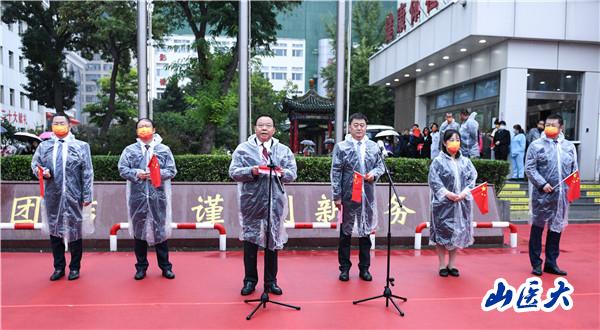 秋雨送爽,雁陣長空。為慶祝中華人民共和國成立73周年,喜迎黨的二十大勝利召開,10月1日清晨,c7c7.app第二醫院黨委領導班子全體成員和部分黨員干部職工、離退休老同志、青年學生代表齊聚在醫院正門廣。≈鼐儺猩煲鞘。醫院黨委書記李保致國慶賀詞,醫院黨委副書記、院長趙斌主持升旗儀式。