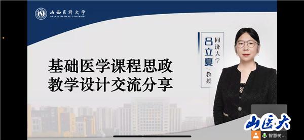 10月27日晚,學(xué)校聯(lián)合智慧樹邀請同濟(jì)大學(xué)呂立夏教授線上進(jìn)行基礎(chǔ)醫(yī)學(xué)課程思政教學(xué)設(shè)計(jì)交流分享,助力提升參加山西省高校課程思政教學(xué)設(shè)計(jì)大賽參賽教師的課程思政教學(xué)能力。