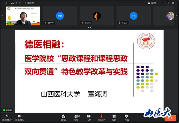 董海濤指出,實現醫學生健康發展,不僅要靠思政課程教師的貢獻,還需要每一個專業課程教師的作用,努力承擔起為黨育人、為國育才的重任。