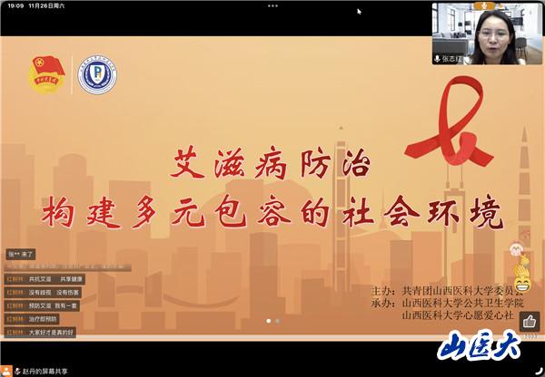 為進(jìn)一步宣傳艾滋病防治知識,引導(dǎo)青年學(xué)生知艾防艾、共享健康,在第35個“世界艾滋病日”來臨之際,校團(tuán)委與公共衛(wèi)生學(xué)院于11月26日晚聯(lián)合舉辦了防艾健康教育專題講座,邀請我校1990級公衛(wèi)優(yōu)秀校友、國際勞工組織項目官員武汝廉老師主講。講座以騰訊會議形式開展,榆次區(qū)疾病預(yù)防控制中心艾滋病科副主任醫(yī)師劉佰成、公共衛(wèi)生學(xué)院黨委書記張志紅、校團(tuán)委李燁老師和全校300余名學(xué)生參加,公共衛(wèi)生學(xué)院分團(tuán)委書記張瑾主持講座。