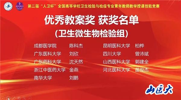 12月29-30日,第二屆 “人衛杯”全國高等學校衛生檢驗與檢疫專業青年教師教學授課競賽以線上方式舉行。我校公共衛生學院衛生檢驗學教研室閻小青和郭建全兩位青年教師作為選手、劉良坡老師為領隊代表學校參賽,分別在“衛生理化檢驗”和“衛生微生物檢驗”兩個賽道獲得一等獎1項、二等獎1項、優秀教案獎2項的優秀成績。