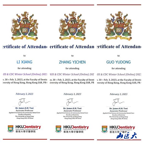 2023年寒假,我?誶灰窖г汗穸、張一辰和李想同學(xué)與多所院校的41名學(xué)生共同完成了“香港大學(xué)牙醫(yī)學(xué)院在線課程”研究學(xué)習(xí)項(xiàng)目。