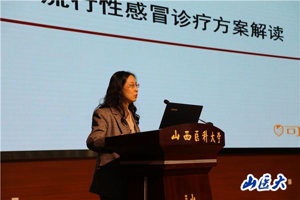 韓婷以《學(xué)校流感防控》為題,重點(diǎn)圍繞流感的預(yù)防與控制,向大家講解了流感病毒分類、流感病例類型、預(yù)防措施、干預(yù)措施、趨勢(shì)研判等多方面的防控知識(shí)。李冬艷以《流行性感冒診療方案解讀》為題,以流感診療為切入點(diǎn),對(duì)流感的傳播途徑、臨床表現(xiàn)、鑒別診斷、治療與用藥等方面進(jìn)行了詳細(xì)講解。兩位專家用通俗易懂的語(yǔ)言,圖文并茂的形式,深入淺出地為參會(huì)師生上了一堂生動(dòng)精彩的傳染病預(yù)防與治療培訓(xùn)課。