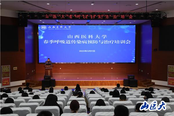 為切實(shí)做好學(xué)校春季呼吸道傳染病防控工作,有效預(yù)防與控制春季呼吸道傳染病的發(fā)生和流行, 3月9日上午,學(xué)校在中都校區(qū)教學(xué)辦公樓一層學(xué)術(shù)報(bào)告廳舉辦了春季呼吸道傳染病預(yù)防與治療培訓(xùn)會(huì),特邀太原市疾病預(yù)防控制中心傳染病防制科科長(zhǎng)韓婷、第一醫(yī)院呼吸與危重癥醫(yī)學(xué)科主任醫(yī)師李冬艷作專題講座。會(huì)議由黨委辦公室、校長(zhǎng)辦公室主任趙良淵主持,學(xué)校相關(guān)部門負(fù)責(zé)人、全體輔導(dǎo)員、校醫(yī)院工作人員和部分學(xué)生代表等120余名師生參加了此次培訓(xùn)。