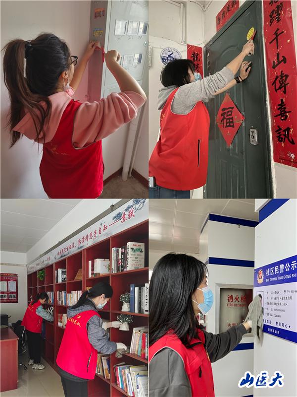 此外,志愿者們前往學校北家屬院、南家屬院、新建南路二社區、第一醫院宿舍、網通宿舍等地,對居民進行創城文明城市的宣傳、并為其提供了日常幫助,整理并清掃小區樓道內雜物和小廣告,幫助社區清掃了辦公室內書架、展板和會議室,收集和整理了閑置物等。