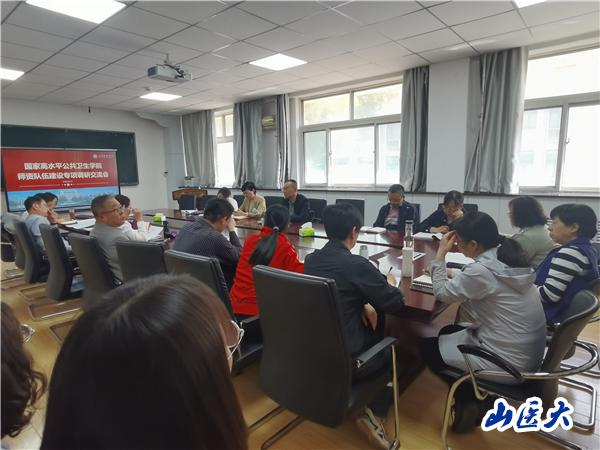 座談會上,張志紅圍繞教師師德提高工程、教師專業(yè)提升工程、教師發(fā)展平臺工程、教師結構優(yōu)化工程、理論實踐“雙師”等方向對公共衛(wèi)生學院的師資隊伍建設已完成工作做了匯報,介紹了師資隊伍工作遇到的難點和問題。