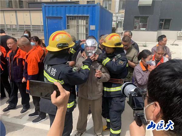 隨著警鈴響起,伴著滾滾濃煙,所有學生從公衛樓有序跑出,學校應急隊及時趕赴火場,開展火情勘測及人員疏散……5月25日上午,我校迎澤校區按照預案聯合屬地消防隊開展了一場消防逃生演練及技能培訓。