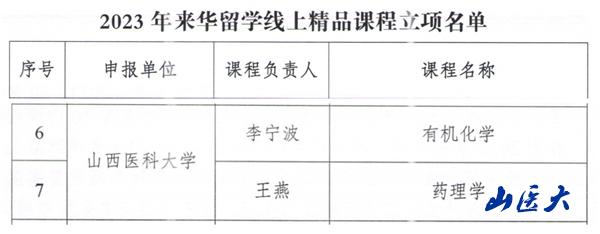 為提高我省來華留學生培養質量,推動留學生課程教學模式和教學手段創新,豐富擴大我省優質課程教學資源總量,打造“留學山西”教育品牌,山西省教育廳于近期開展了2023年來華留學線上精品課程遴選和建設工作。我校國際合作與交流部經過積極組織申報,最終基礎醫學院化學教研室負責的《有機化學》和藥理教研室負責的《藥理學》獲得立項資助。