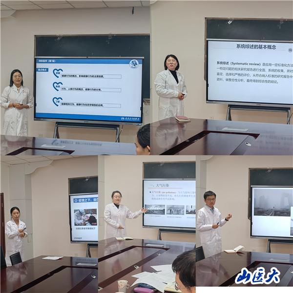 考核會上,劉潔、衛飛雪、胡艷、郭帥、李銳等5名青年教師分別以《健康行為及其影響因素》《系統綜述的步驟和方法》《傳染病的基礎特征和病程發展》《大氣污染及大氣污染物的轉歸》《大氣氣溶膠》為授課題目進行了現場試講。評委們從教學內容、教學設計、教學邏輯、教學效果、PPT與板書的結合以及課程思政的融入等多個方面進行了綜合點評,肯定了各自特色和優勢的同時,就如何更好的授課提出了寶貴的意見和建議。隨后,各位評委審查了相關培訓資料。最終,5位新進教師和5位指導教師均順利通過考核。
