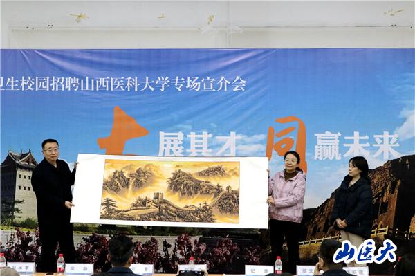 大同市衛健委領導向學校領導贈送了《長城》剪紙畫,象征著市校雙方將進一步深化合作,共育新時代醫學人才,不斷譜寫校地協同發展新篇章。