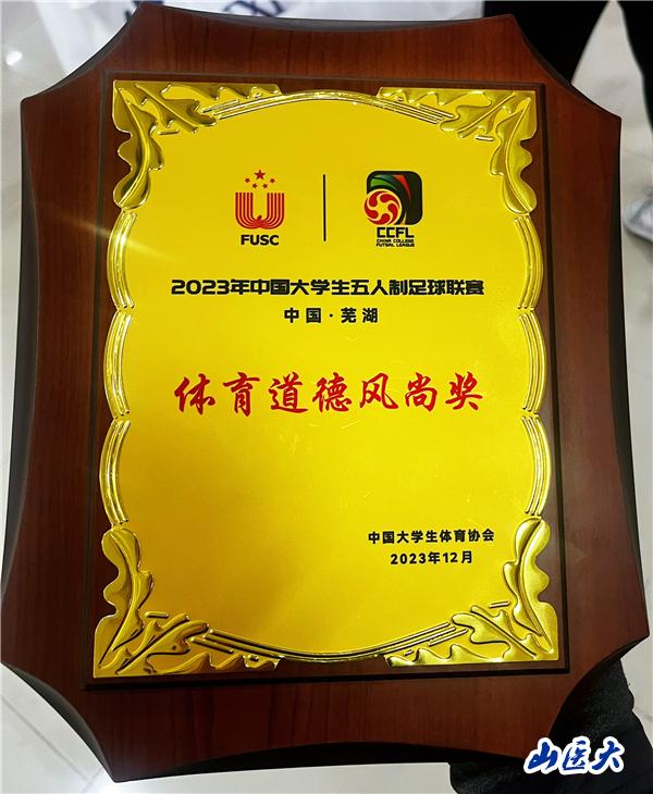 12月7日,2023年中國大學(xué)生體育協(xié)會五人制足球聯(lián)賽(女子組全國總決賽)在安徽省蕪湖市落下帷幕。在為期10天的比賽中,我校女子足球隊先后與北京體育大學(xué)中國足球運動學(xué)院、同濟大學(xué)國際足球?qū)W院等來自全國頂尖的29所高水平女足隊伍同場競技,在領(lǐng)隊教練的帶領(lǐng)下,最終成功晉級全國16強,并獲得體育道德風(fēng)尚獎。充分展示了山醫(yī)學(xué)子風(fēng)采,贏得了對手的尊重。