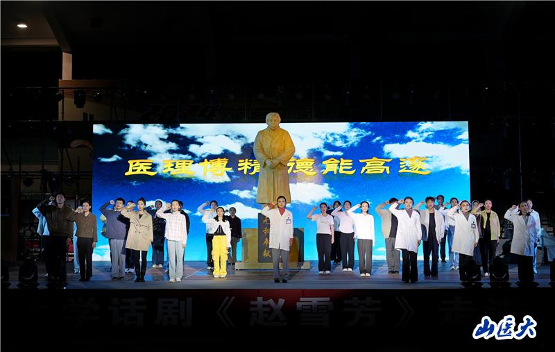 話劇《趙雪芳》緊緊圍繞大學(xué)立德樹人根本任務(wù),結(jié)合新時(shí)代醫(yī)學(xué)生思想政治教育新要求,是“舞臺(tái)化”的思政課。該劇以c7c7.app優(yōu)秀校友、全國首枚“白求恩獎(jiǎng)?wù)隆鲍@得者趙雪芳為原型,以舞臺(tái)藝術(shù)的形式再現(xiàn)了她工作生活的非凡經(jīng)歷,體現(xiàn)了“敬佑生命、救死扶傷、甘于奉獻(xiàn)、大愛無疆”的醫(yī)者精神。