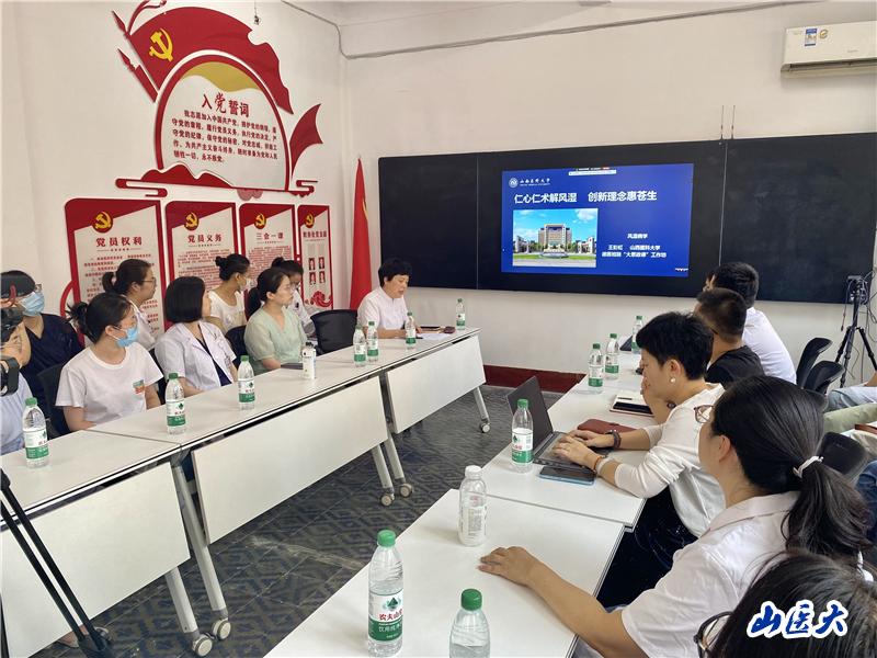 8月6日下午,學校“德醫相融工作坊系列活動——課程思政專項第二十六期”在第二臨床醫學院舉辦。本期活動由內科學——風濕性疾病課程負責人王彩虹和內科學——呼吸系統疾病課程負責人趙卉分享交流。課程思政建設中心鄭潔、教務部醫學教育研究中心主任劉楠以及第二臨床醫學院核心課程團隊共20余人參加線下活動,線上700余人觀摩。會議由第二臨床醫學院教務處處長郭錦麗主持。
