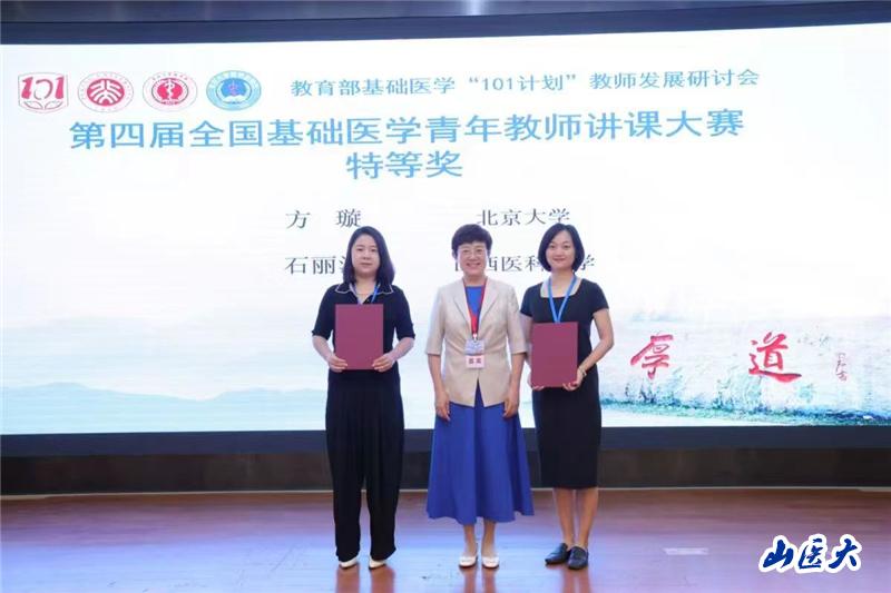 8月26日,第四屆全國(guó)基礎(chǔ)醫(yī)學(xué)青年教師講課大賽在北京舉辦。該賽由教育部基礎(chǔ)醫(yī)學(xué)“101計(jì)劃”、教育部基礎(chǔ)醫(yī)學(xué)專業(yè)虛擬教研室、北京大學(xué)醫(yī)學(xué)部、北京大學(xué)基礎(chǔ)醫(yī)學(xué)院聯(lián)合主辦,北京大學(xué)醫(yī)學(xué)出版社承辦。在27位入圍決賽的全國(guó)青年教師中,我校基礎(chǔ)醫(yī)學(xué)院人體解剖教研室石麗洪老師以出色的表現(xiàn)斬獲特等獎(jiǎng)。另一位特等獎(jiǎng)獲得者來(lái)自北京大學(xué)醫(yī)學(xué)部。