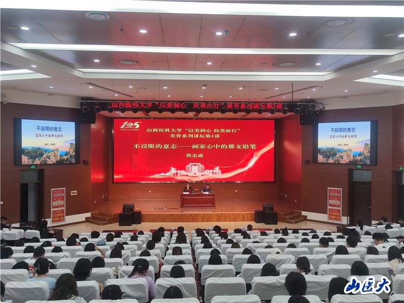 9月13日,由我校健康人文研究中心、黨委人才工作部、校團委及人文社會科學學院共同舉辦的“以美潤心 向美而行”美育講壇第1講在中都校區教學辦公樓一層學術報告廳舉行。講壇邀請國際水彩名家簡忠威帶來一場以“不設限的意志——畫家心中的那支鉛筆”為主題的精彩報告。晉中市政協副主席、市工商聯主席田桂梅,校團委書記張利宏、副書記常彥民參加了報告會,人文社會科學學院黨委書記姚尚滿主持報告會。來自全校的400多名學生參加了報告會。