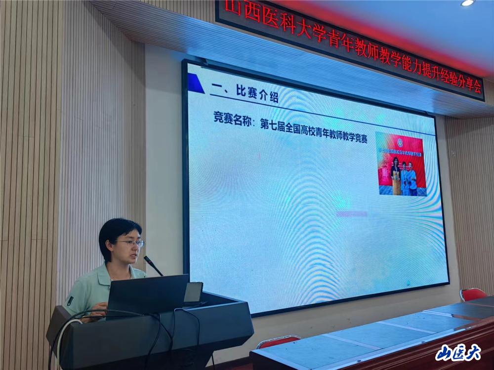 張愛平教授是本次省級青教賽醫科組的評委組長,分享會上她以“如何提升教學能力”為題,從練就扎實教學基本功、如何規范書寫教案、如何準備教學比賽、如何規范制作PPT四個方面進行了講述,并就如何上好一節課給青年教師做出了具體指導;龍女老師是本次全國青教賽醫科組二等獎的獲得者,她從比賽規模、備賽時間、材料提交、違紀處理等多方面分析競賽變化,從“熟”悉教學內容、多方面“能”力提升、無“生”課堂教學如何進行有效的互動、“巧”妙的教學設計四方面,分享了寶貴的教學競賽實戰經驗。