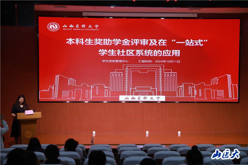 石璟詳細解讀了我校獎助學金資助政策體系,包括各類資助項目的申請條件、資助標準、評審程序、資金管理等;結(jié)合本年度已經(jīng)結(jié)束的家庭經(jīng)濟困難認定工作、國家獎學金評審工作和即將開展的國家勵志獎學金、本科生綜合獎學金評審工作,介紹了學校資助工作的具體流程、重點難點、注意事項;通過實踐操作、圖文結(jié)合的方式,介紹了“一站式”學生社區(qū)線上服務平臺的功能設(shè)置、?櫸智筒僮鞣椒ā